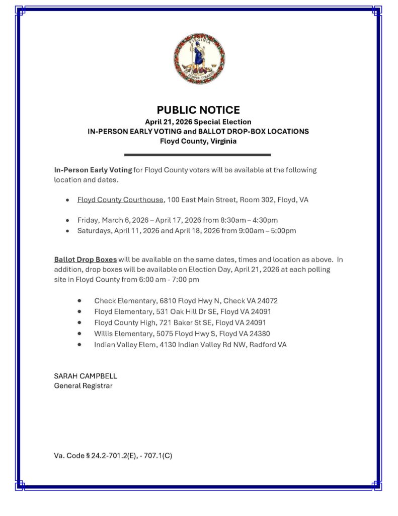 Public Notice April 21, 2026 In-Person Early Voting and Ballot Drop-Box Locations Posted February 13, 2026 Written By Sarah Campbell