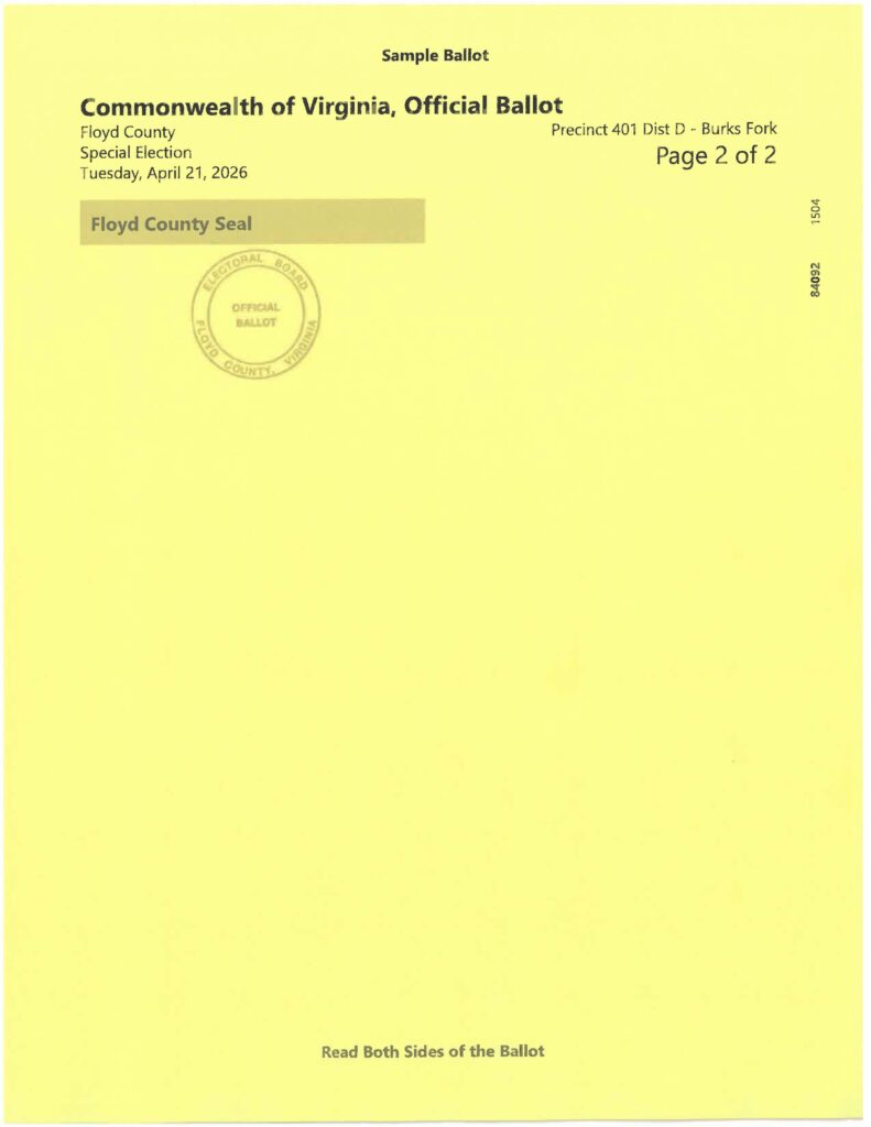 Sample Ballot Precinct 401 – Burks Fork